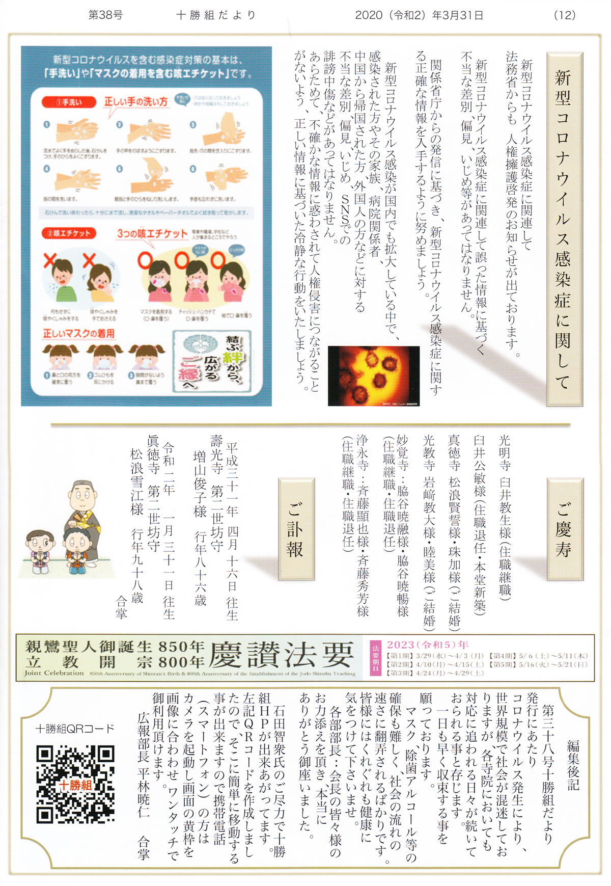 ※ 1ページは各お寺のご門徒さま向け、2ページはお別院のご門徒さま向けです。ダウンロードしたPDFファイルを印刷なさる際は「すべてを印刷」ではなく「表示されているページのみを印刷」または「1ページを印刷」や「2ページを印刷」等、設定を変えて印刷してください。よろしくお願いします。